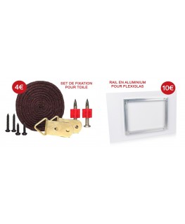 - un set de fixation pour les toiles composé d'une cordelette, de vis et cheville (à monter soi-même).